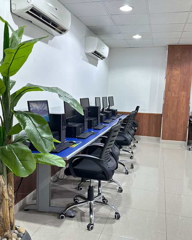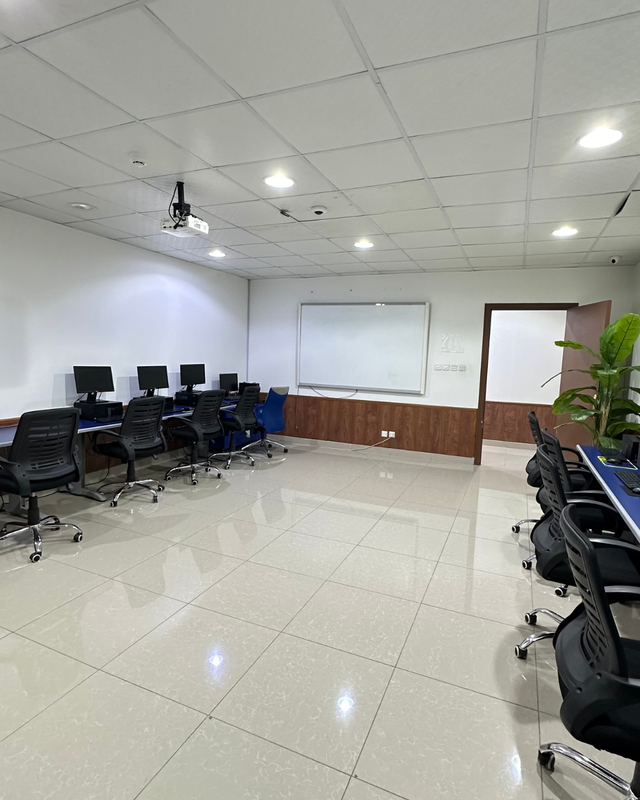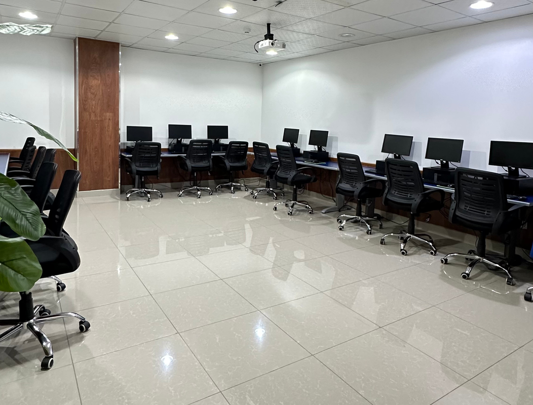 لتدريب العملي والدورات التقنية. توفر القاعة بيئة تعليمية مريحة واحترافية تسع حتى 20 مستخدمًا، مع تجهي