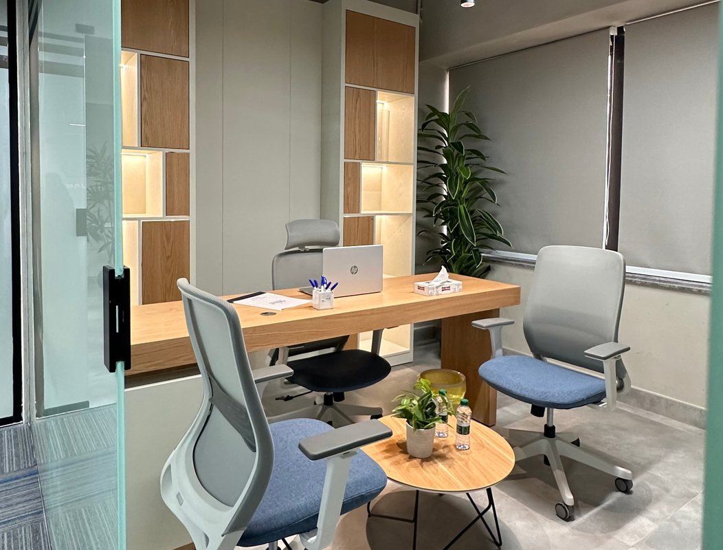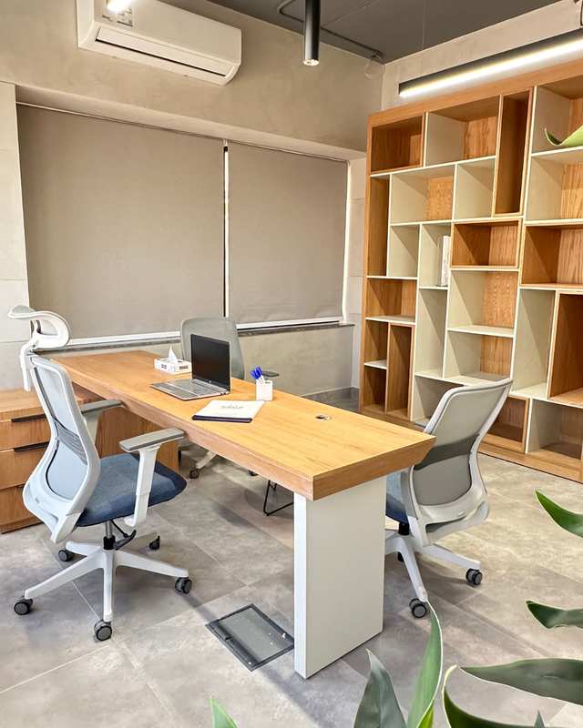 العملية. يوفر المكتب مساحة خاصة ومكتبة ملفات منظمة، إلى جانب شاشة ذكية مص